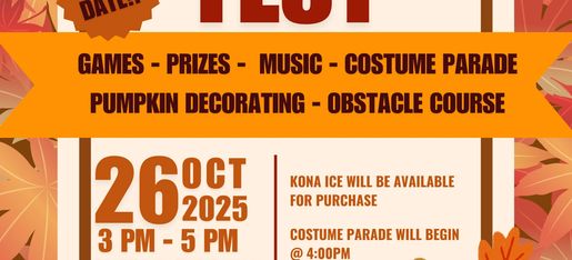 Due to the upcoming weather, we have postponed Fall Fest until, Sunday, 10/26, 3-5PM,